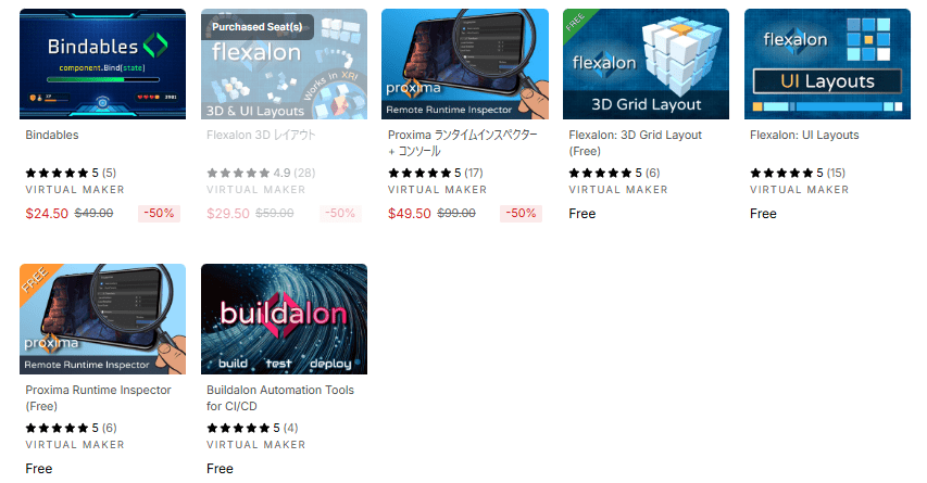 現在UnityAssetStoreでは開発をシームレスに進めることができるツールを中心に販売している「Virtual Maker」のアセットが50%になるパブリッシャー丸ごとセールが開催されています。