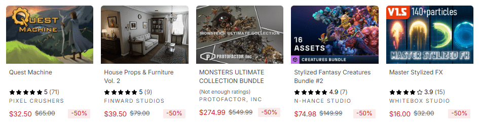 最も人気を集めた300を超えるアセットが50%オフ