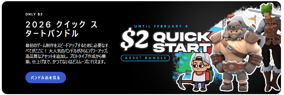 Unity アセットストアで素早くゲーム制作に取り掛かることができるアセットをまとめた2026年版クイックバンドルが最大 98% オフのセールが開催!