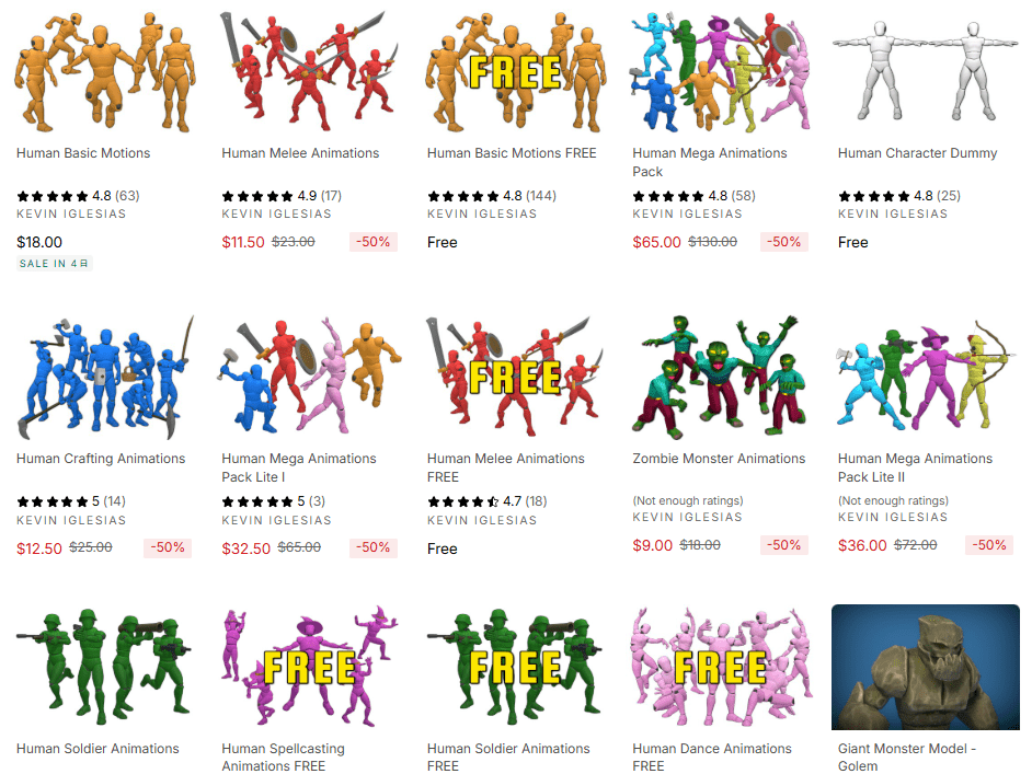 現在UnityAssetStoreではテーマごとに用意されたモーション集を中心に販売している「Kevin Iglesias」のアセットが50%になるパブリッシャー丸ごとセールが開催されています。
