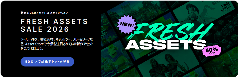 【Unity】新しめの人気アセットが50%OFF!「NEW!Fresh Assetsセール Winter Edition」がUnityAssetStoreで開催中!【おすすめ】