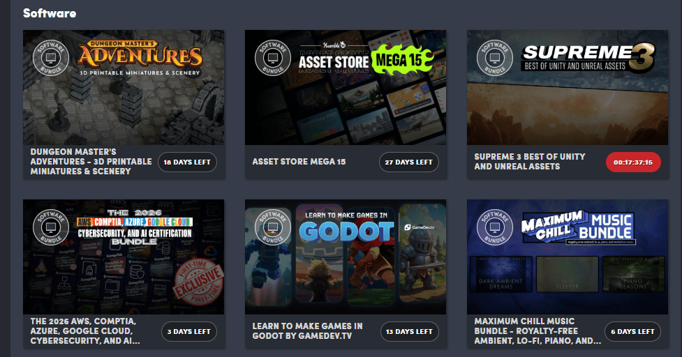下記の画面が出たら、メニューにある[Bundles]をクリックし、その中で[Softwares]をクリックすると、「Asset Store MEGA 15」があるので、その中の「~ DAY LEFT」をクリックします。