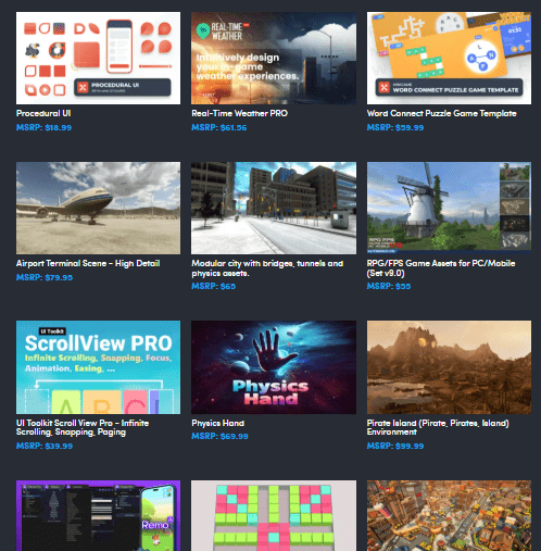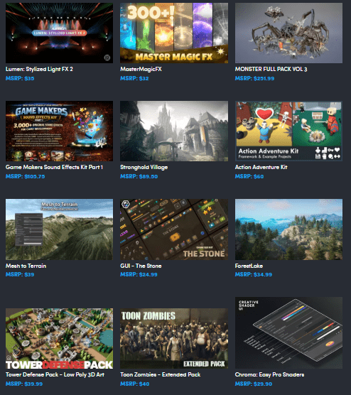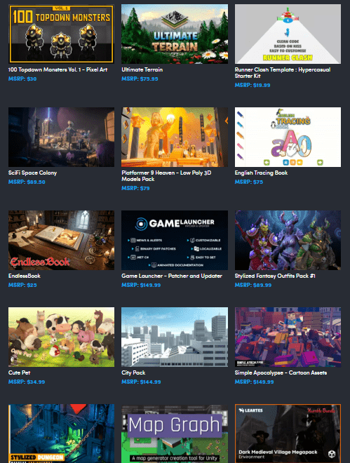 アセット自体は3Dモデルやエフェクト、テンプレート、ツールなどバラエティに富んでいていい感じ