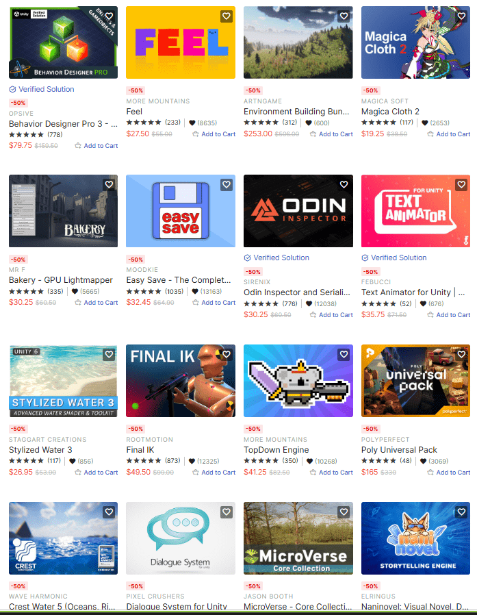 • 対象&割引:今年アセットストアで最も人気を集めた300を超えるアセットが50%オフ